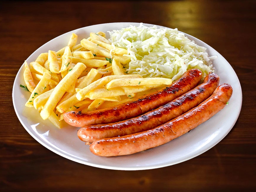 Conține: 3 bucăți cârnăcoiri grill, o porție cartofi pai, muștar